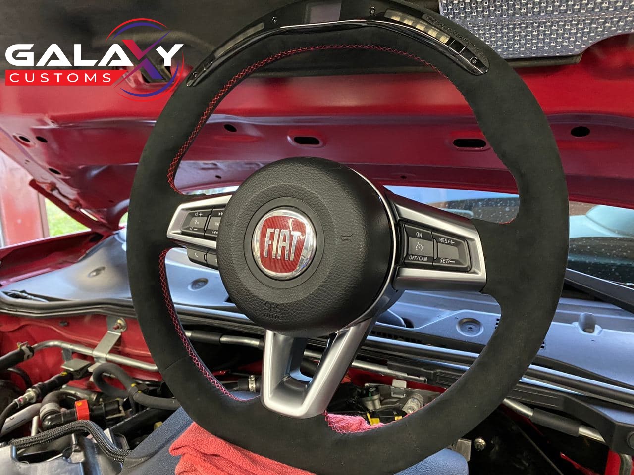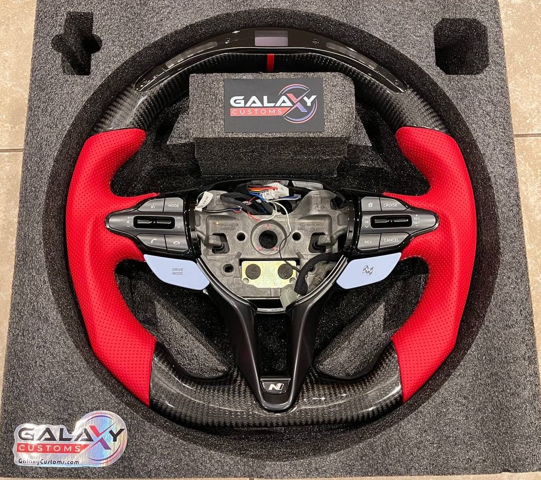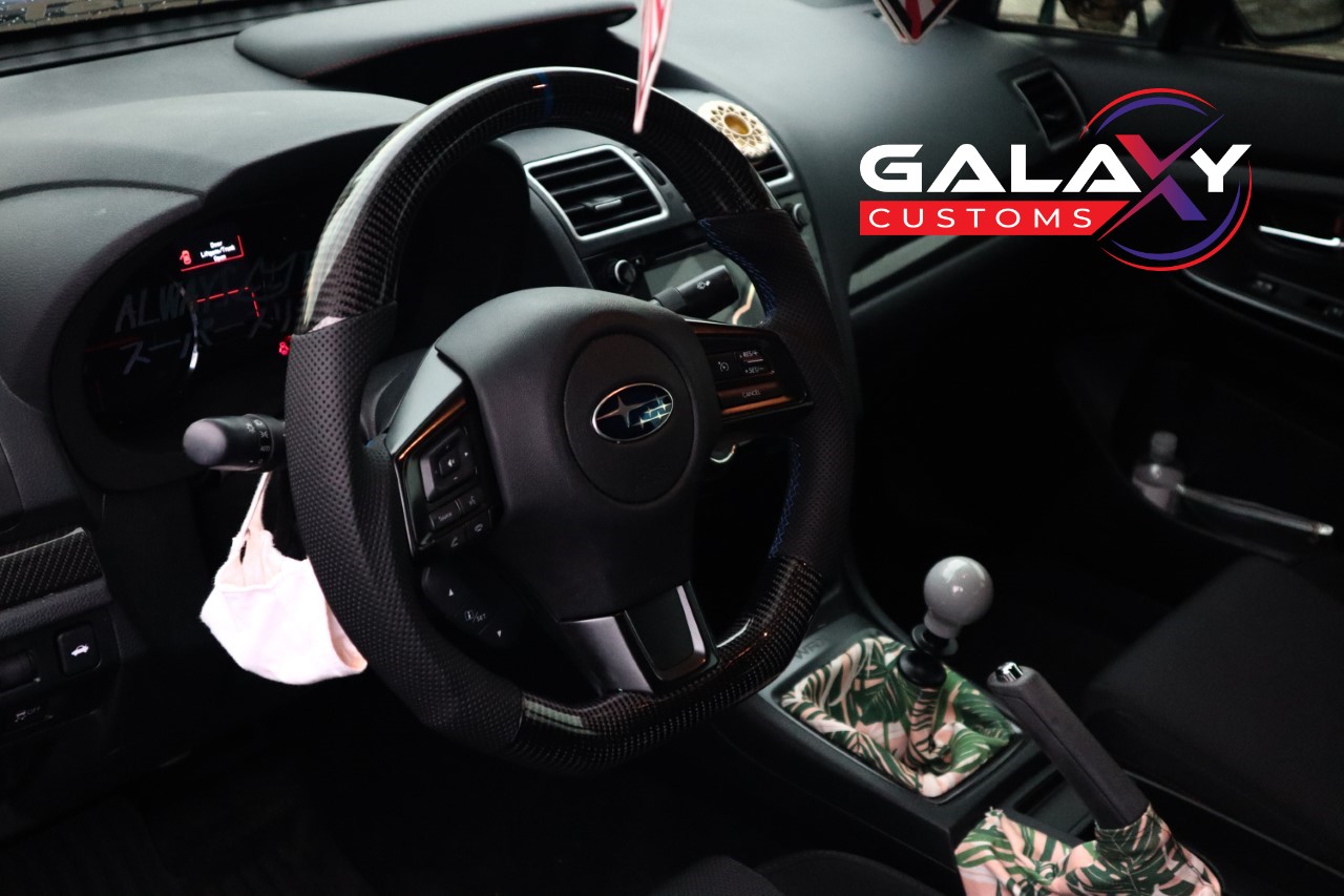 Galaxy Customs is your one stop shop for custom OEM+ steering wheels. Most modern vehicles have a number of safety and technology related items that keep you from modifying. Our steering wheels allow you to keep your radio controls, heated wheel functions, airbag, etc. while also still having a custom bespoke look.